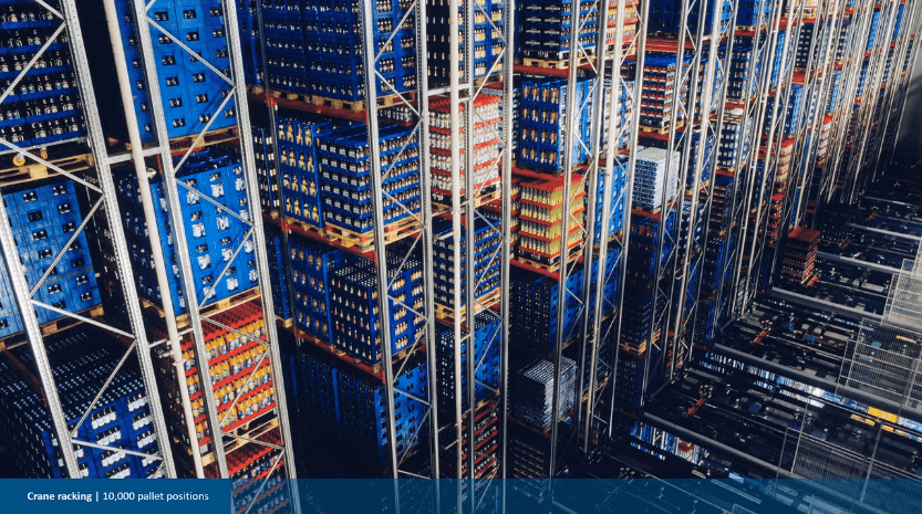 - Palettenlager: 6.900 Palettenstellplätze à 574 kg